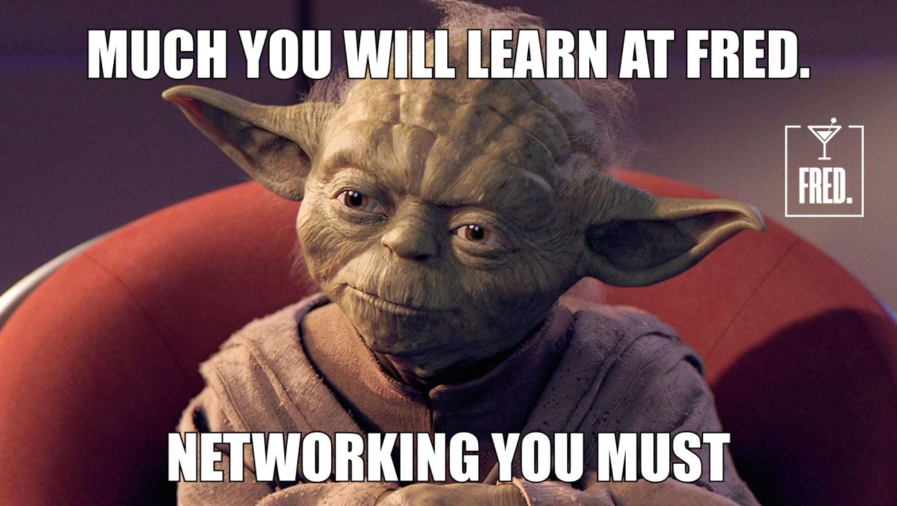 Meister Yoda weiss es längst: Bei FRED. lernst du Menschen kennen, die deinen Horizont erweitern. Komm vorbei und spüre die Networking-Macht!