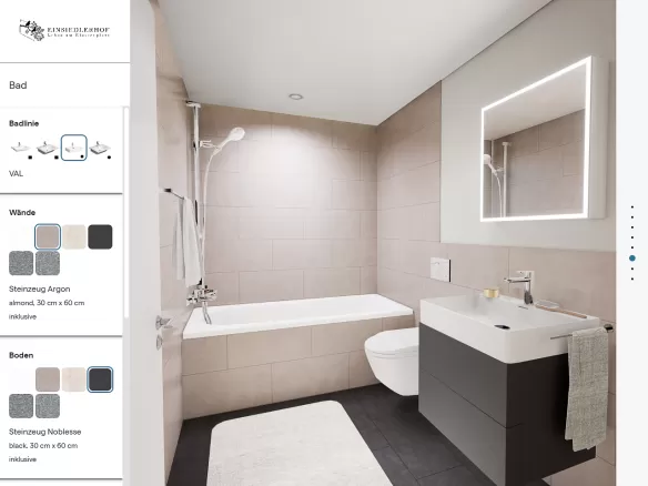 Le configurateur comble le fossé entre le monde physique et le monde numérique. Il offre ainsi à nos mandataires et à leurs clients une expérience tactile et visuelle: elle peut également être vécue dans le showroom qui peut être réservé en supplément. L’accent est toujours mis sur un parcours client ciblé avec une navigation intuitive, des possibilités d’interaction pratiques et intéressantes, des contenus visuels éloquents et toutes les informations pertinentes sur le projet.