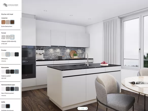 Pour le nouveau projet de construction «Einsiedlerhof», nous avons également été confrontés aux défis suivants : une réduction du risque de coûts externes et un transfert sans faille dans les entreprises. Les souhaits des clients devaient être pris en compte de manière efficace, tout en créant une expérience d'utilisation de grande qualité. Grâce à l'implémentation de notre configurateur, l'Einsiedlerhof a connu une véritable révolution dans la procédure. L'outil numérique développé au sein de l'entreprise a permis aux acheteurs de personnaliser leur future maison en temps réel avec un choix de matériaux et d'appareils variés de qualité. Notre configurateur améliore la gestion des commandes en respectant les budgets de construction. Le processus de vente est ainsi devenu plus simple pour les clients et plus efficace pour notre mandataire.
