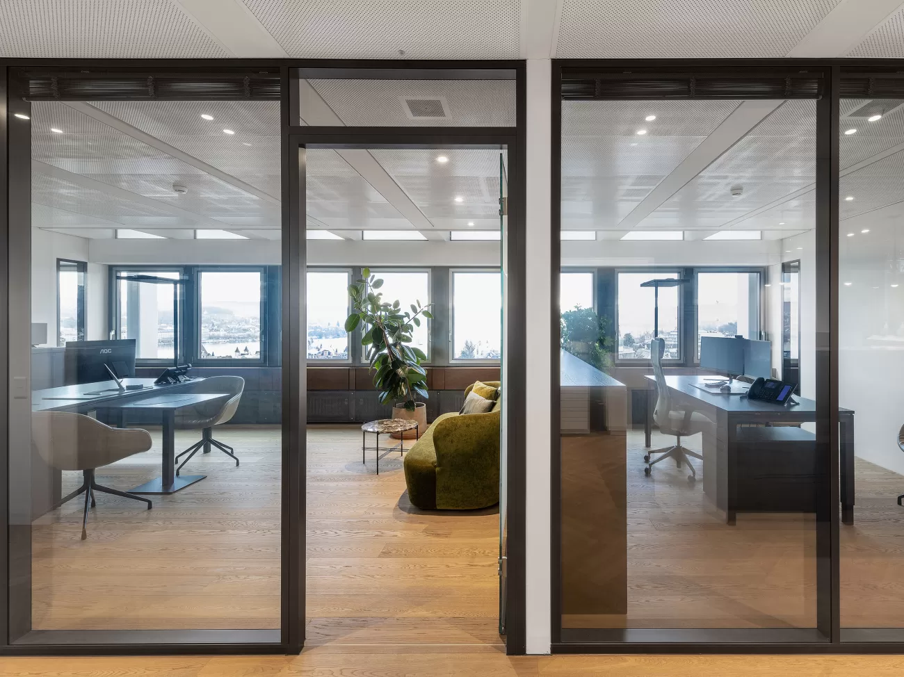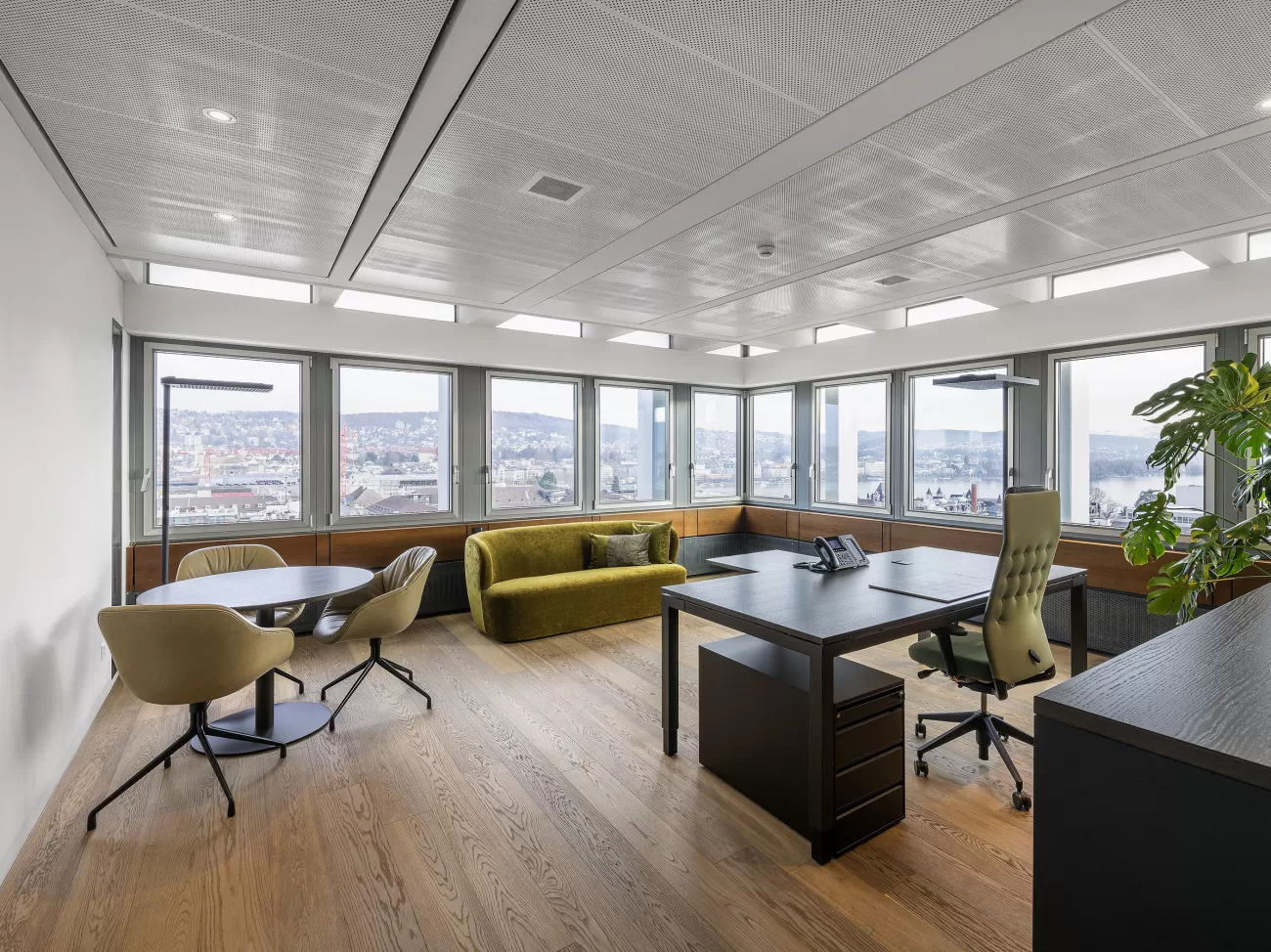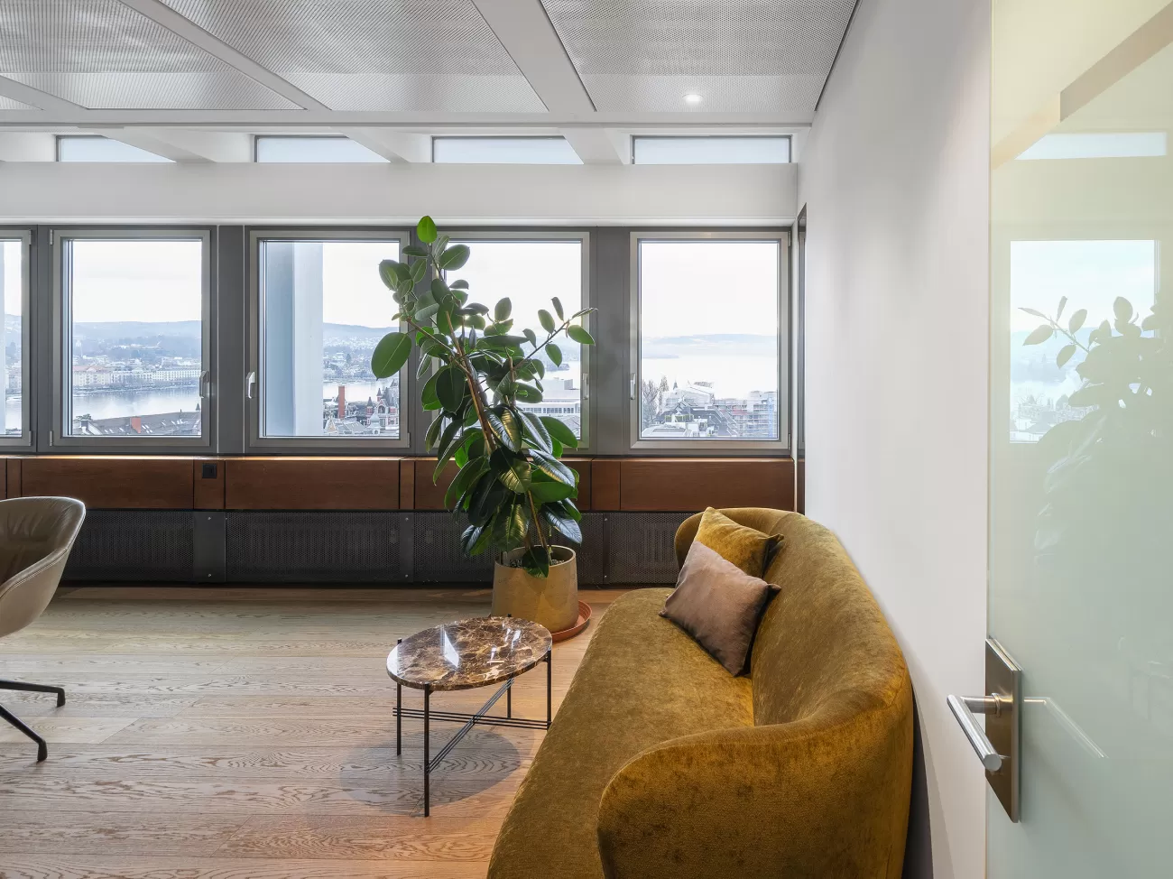 La tour Zur Palme: un bâtiment emblématique de Zurich, qui attire les regards et donne envie de découvrir à quoi ressemble la ville depuis l'un de ses bu-reaux.