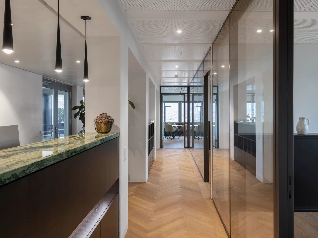 C'est une chance unique pour les entreprises souhaitant attirer l'attention - 11'000 m2 de bureaux sur 14 étages au cœur de Zurich. C'est aussi une excellente occasion pour Tend de montrer qu'il est possible de continuer à écrire avec succès l'histoire d'un bâtiment classé monument historique. Notamment, parce que certains éléments, comme les gaines de câbles en bois, sont classés monuments historiques. Même si des caractéristiques comme celles-ci limitent les aménagements, elles font référence à une époque qui a largement contribué à façonner l’image de la Suisse et la fascination pour ce bâtiment.